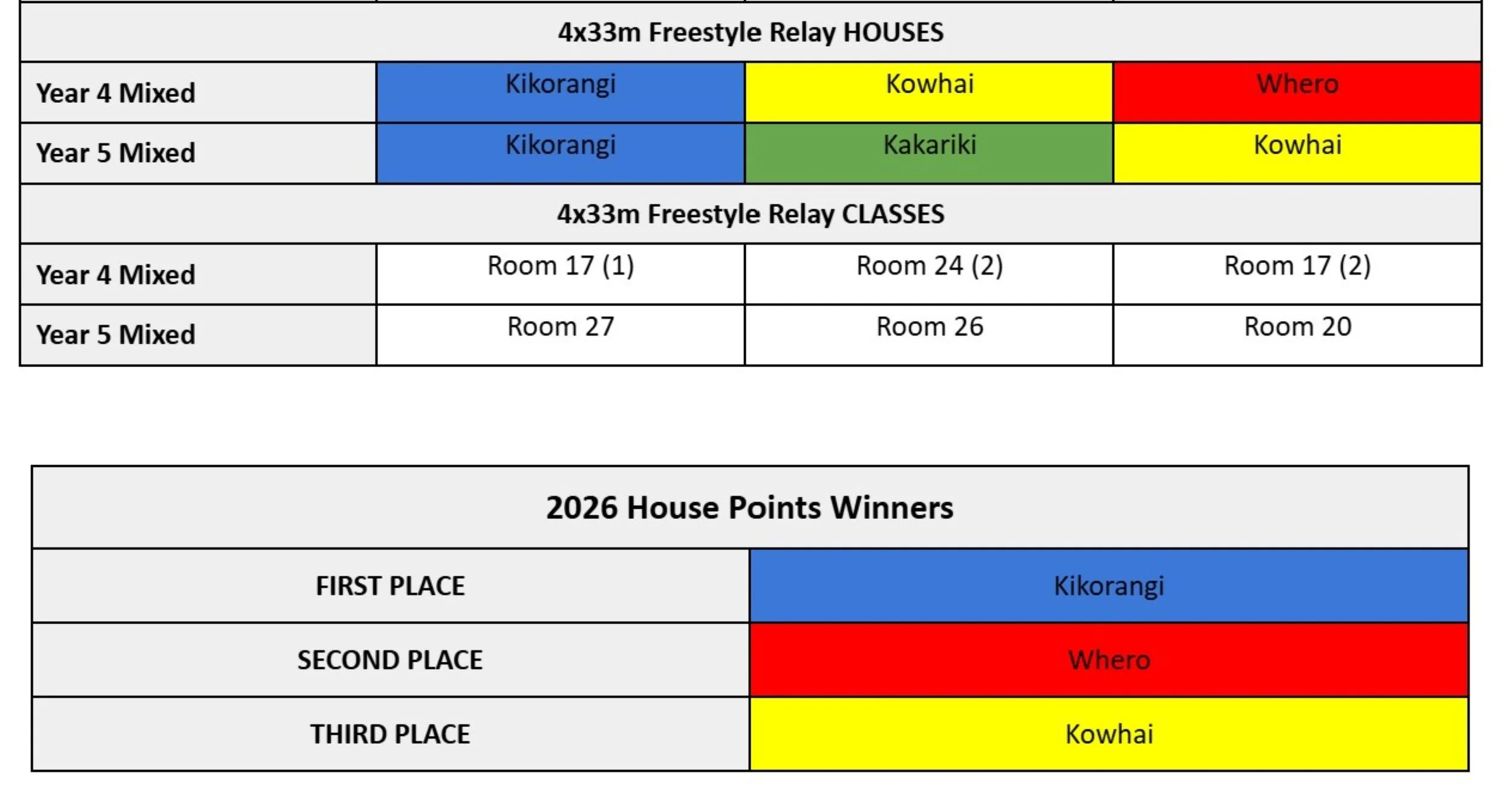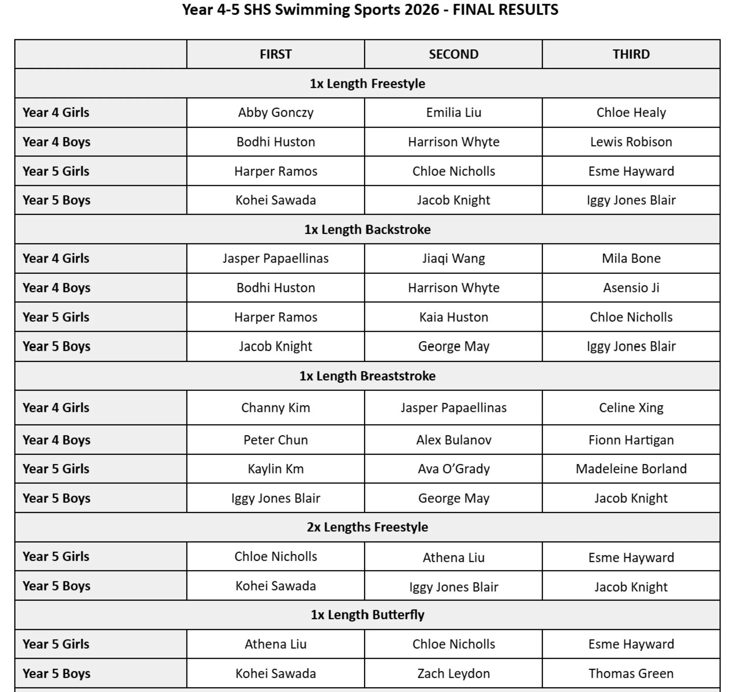 The results are posted below. The Swimming Champions for 2026 will be posted after they are announced at Excellence Assembly.