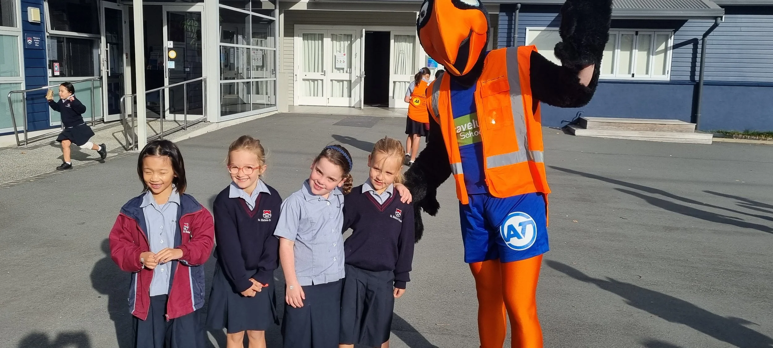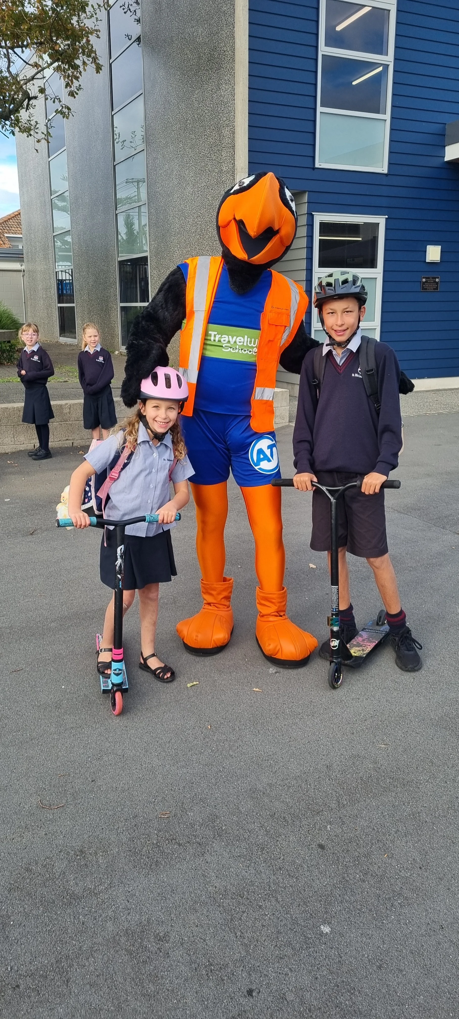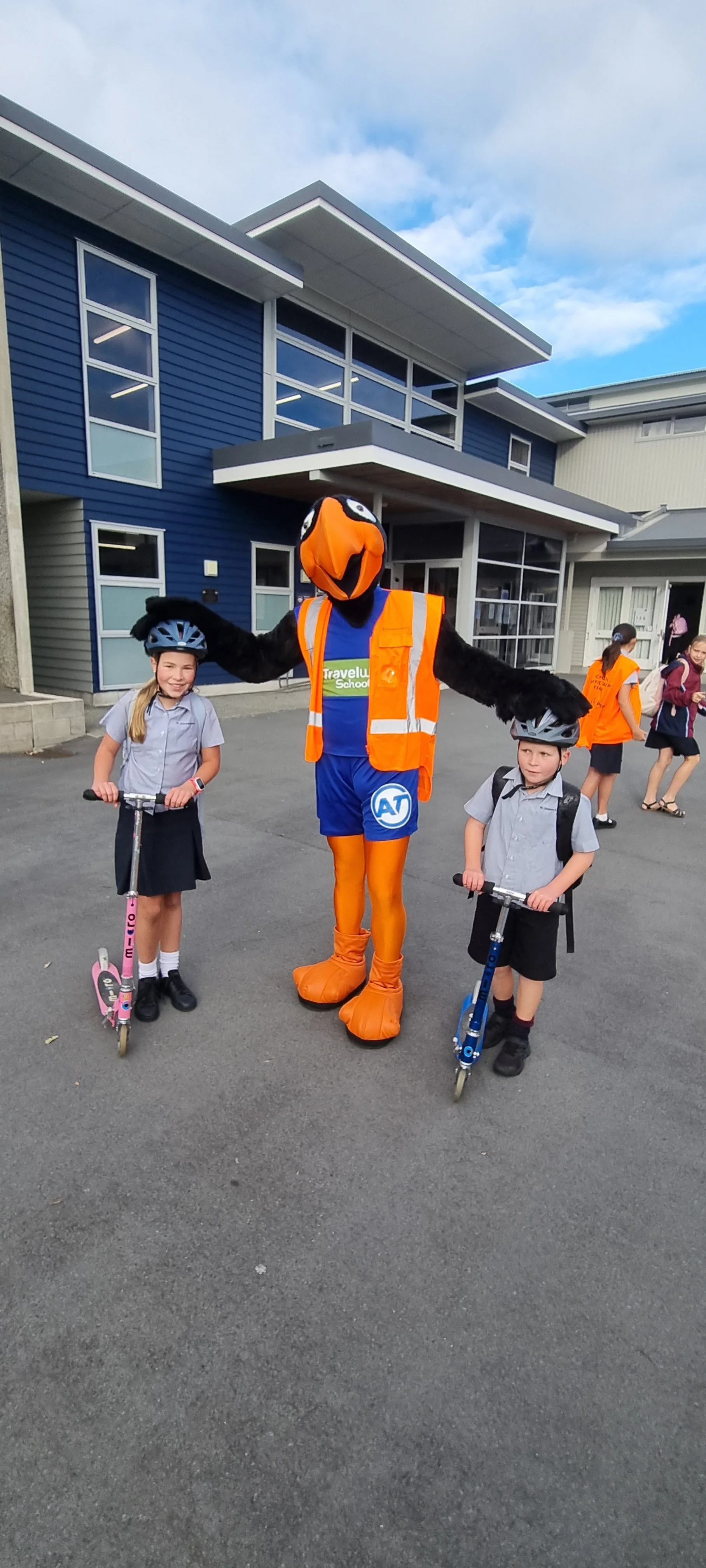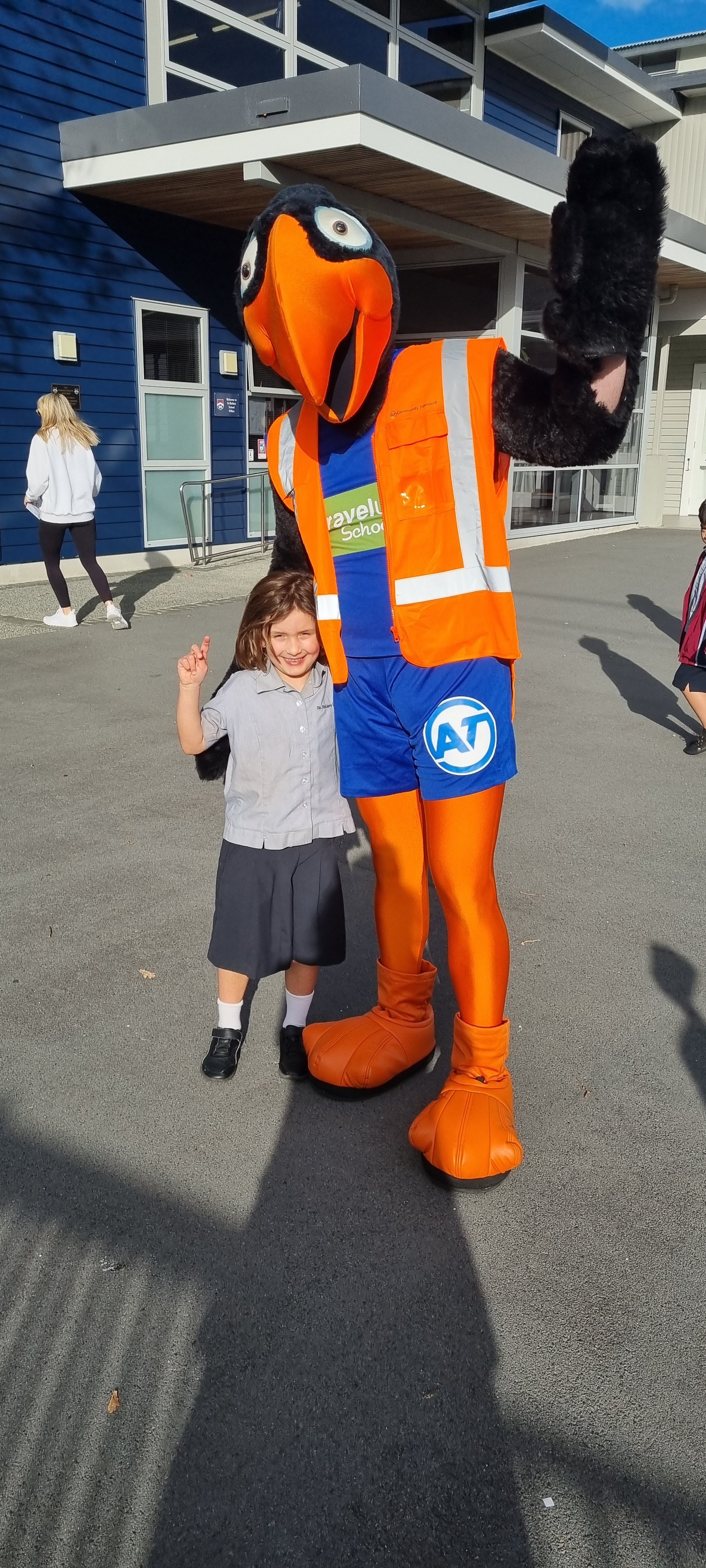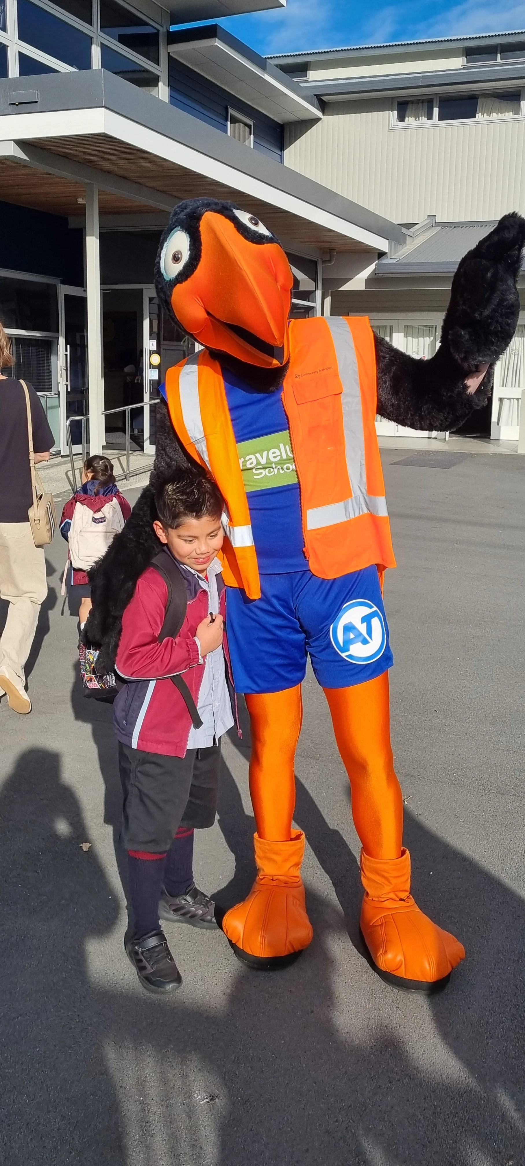 Last Wednesday we were joined at school by the Auckland Transport Travelwise mascot. There were spot prizes and photo opportunities for many of our school children and whanau. It was great to see so many in our community walking, scootering or cycling to school each morning. WOW Wednesdays will continue with the help of our Travelwise Team. Travelwise members will be collecting the names of children who Walk or Wheel to School every Wednesday and draw names out of the boxes each week. The Travelwise Team will be in the junior playground and Endeavour Block. Well done for remembering your helmets and padlocks.